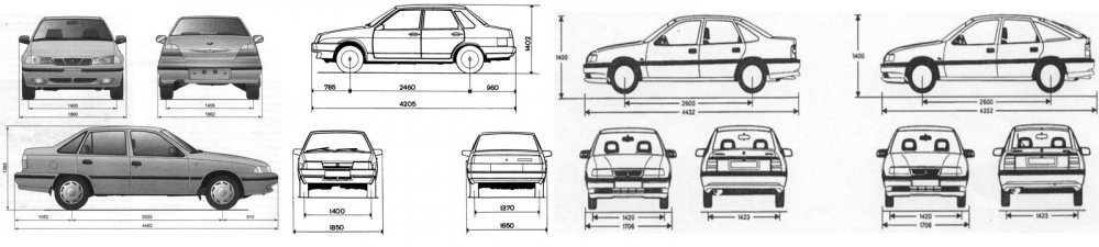 Daewoo Nexia (первое фото) была заметно длиннее не только Kadett E, но и Вектры первого поколения