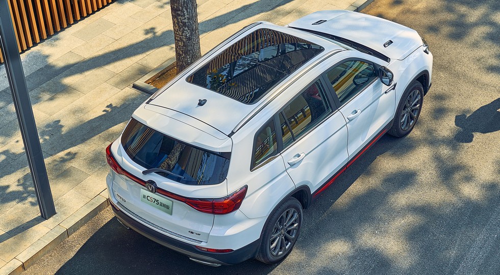 В салоне – черная «кожа» с бордовыми вставками, при этом все так же можно будет выбрать чисто черную отделку. Других обновок внутри нет, о пополнении списка оборудования тоже не сообщается. Актуальному CS75 в Китае положены виртуальная «приборка», климат-контроль, круиз-контроль и панорамный люк.