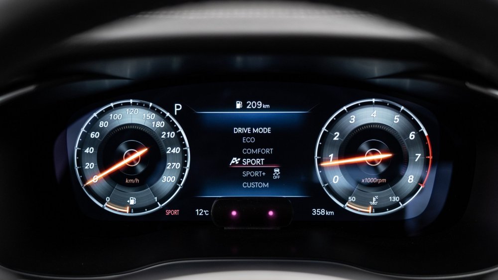 Функционал дополнен системой Genesis Connected Services с бесплатной подпиской на три года. С ее помощью можно дистанционно отпирать и запирать двери, пускать и глушить двигатель, открывать-закрывать окна, управлять климатической системой, просматривать изображения с камер кругового обзора и совершать множество других действий с автомобилем – полезных и не очень.