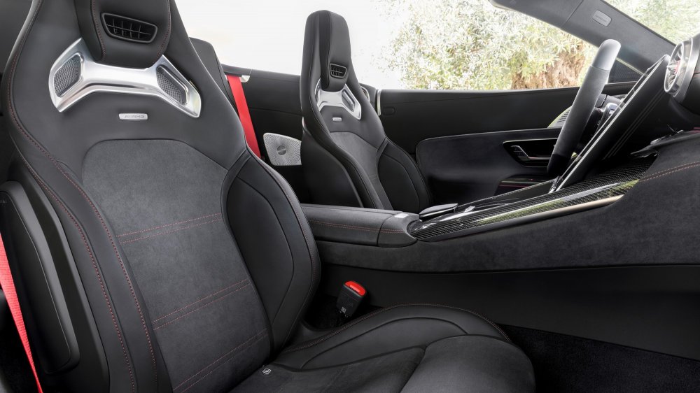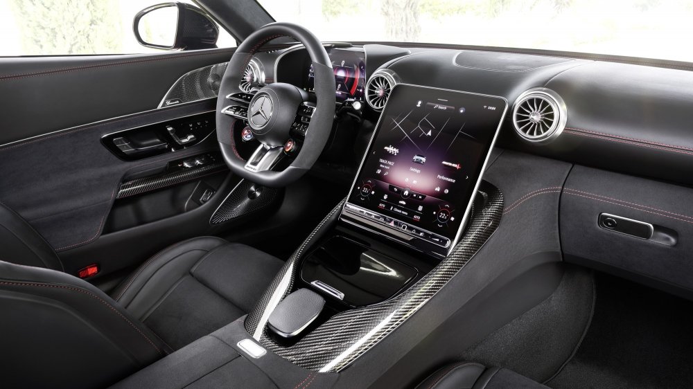 Второй ряд — откровенно детский, предназначенный для пассажиров ростом до 150 см, да и таким здесь будет тесно. Объём багажника со сложенной крышей — 213 л, с разложенной — 240 л, то есть много вещей в большое путешествие взять не получится, но для ручной клади как раз-таки отлично подойдут задние сиденья. Салон оформлен лаконично и даже немного старомодно на фоне других новинок Mercedes-Benz, центральный 11,9-дюймовый экран регулируется по углу наклона (от 12 до 32 градусов), щиток приборов полностью виртуальный 12,3-дюймовый.