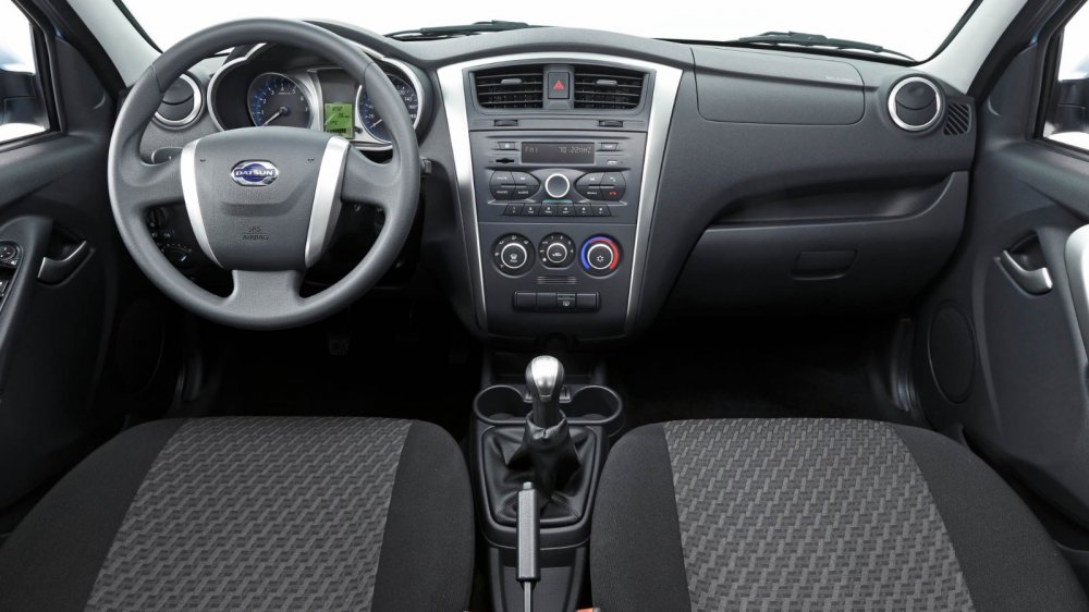 Цены на Datsun начинаются с отметки в 480 тысяч рублей – столько стоит базовая версия Access с неокрашенными бамперами, без передних электростеклоподъемников, подогрева зеркал, пассажирской подушки безопасности и даже центрального замка и бортового компьютера. Чтобы получить все это, нужно заплатить минимум 512 тысяч. Самый доступный on-DO с автоматом стоит 562 тысячи рублей, а климат-контроль появляется в версии Trust II, которая обойдется в 537-587 тысяч в зависимости от мотора и коробки передач. Самый дорогой седан Datsun с АКП, датчиками дождя и света, парктрониками, боковыми подушками безопасности и мультимедийкой с 7-дюймовым цветным экраном обойдется в 657 тысяч рублей.