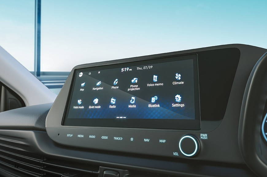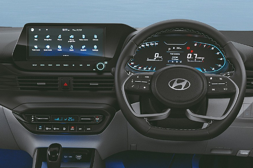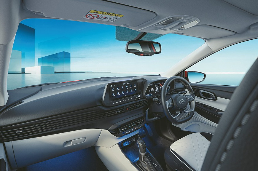 В салоне – «усеченный» руль (раньше была обычная «баранка») и иные материалы отделки. При этом в Индии у Hyundai i20 теперь пять комплектаций, а не четыре: добавлена новая база. В список стандартного оборудования отныне входят ESC и шесть подушек безопасности («простым» исполнениям дореформенного хэтча были положены два «эйрбэга»). Начиная со второй по старшинству версии появляются антенна-плавник и мультимедийная система с 8-дюймовым экраном.