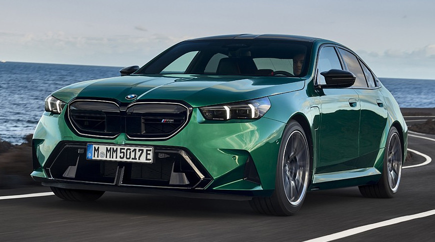Наконец, ещё одно пополнение в баварской гамме — спортседан BMW M5 c гибридной установкой, представленный через неделю после Х3. Наши рендеры датируются октябрём прошлого года, и здесь немного различается лишь деталировка переднего бампера и решётки радиатора.