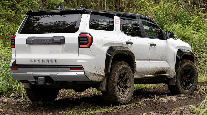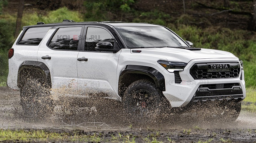 Наконец, завершает сегодняшнюю подборку полноценный внедорожник Toyota 4Runner нового поколения, премьера которого состоялась всё в том же насыщенном на автомобильные новинки апреле. За несколько дней до этого мы сделали собственные изображения модели, и в отсутствие каких-либо шпионских фотографий и тизеров боковой части нам удалось угадать общую форму автомобиля и даже его характерные стойки за задними дверьми, вдохновлённые некогда популярной в России моделью второго поколения. При этом есть и отличия в пропорциях элементов задней части, а также в дизайне фар и решётки радиатора.