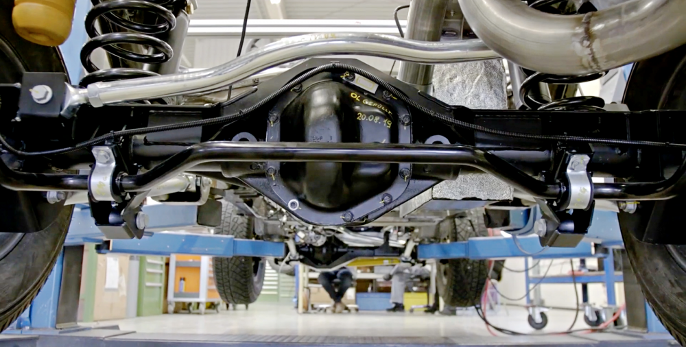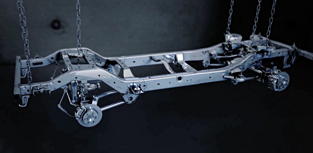 На днях Ineos Automotive опубликовала видеоролик, в котором рассказала о шасси Grenadier. В основу этого внедорожника легла разработанная с нуля стальная рама лестничного типа с характерными изгибами и выступами для карданного вала и мостов. Оба моста — неразрезные, их поставщиком будет итальянская компания Carraro, выпускающая тракторы и комплектующие для них. Двигатели (бензиновые и дизельные) будет поставлять BMW в комплектах с 8-ступенчатыми «автоматами» ZF.