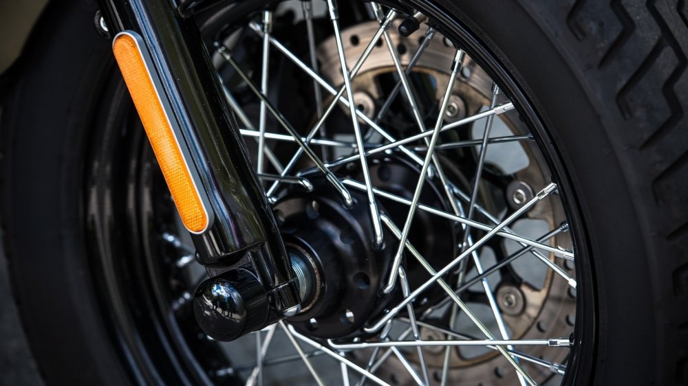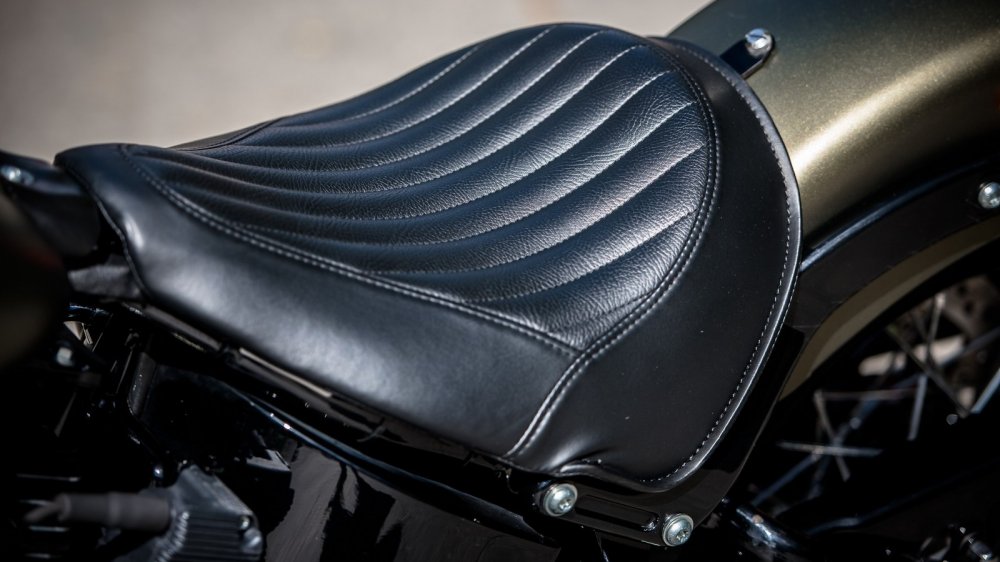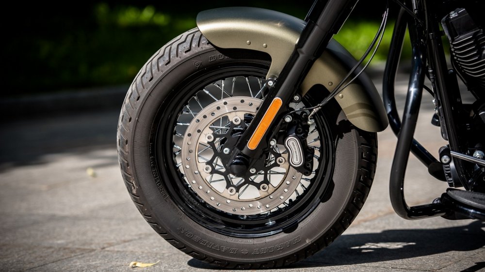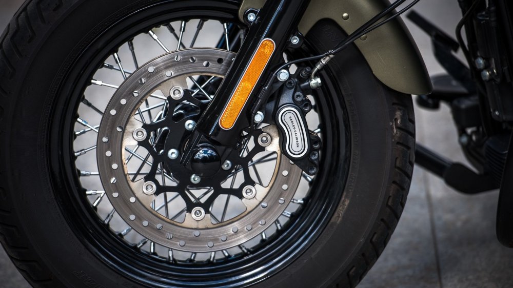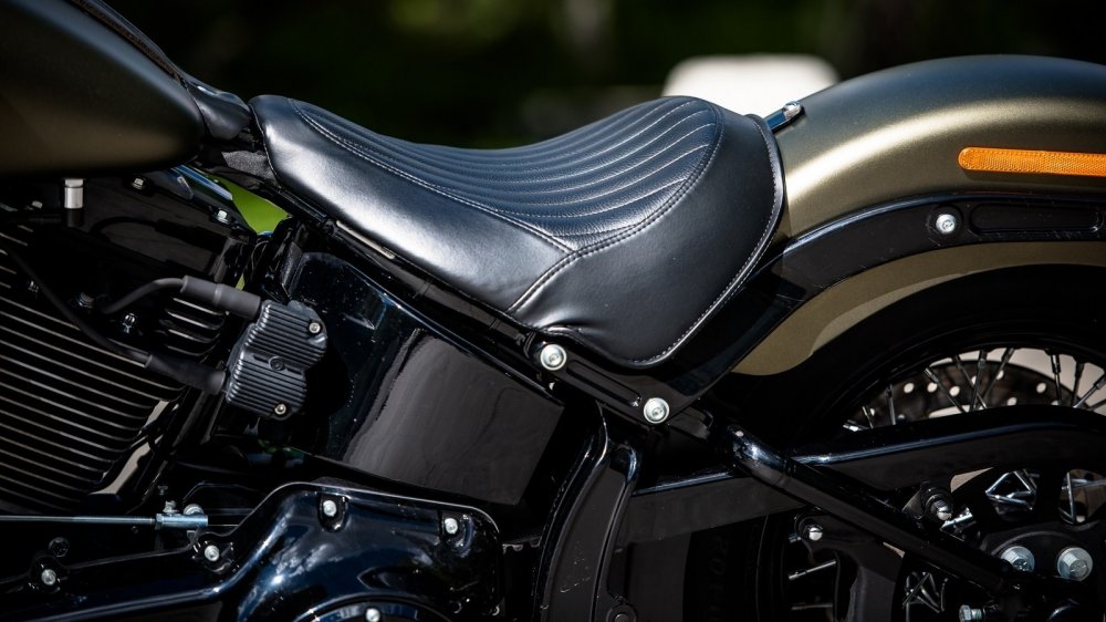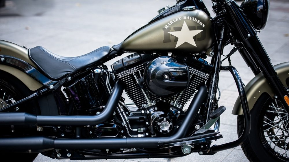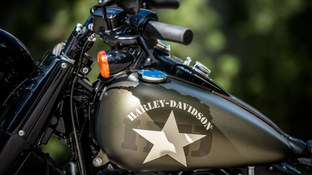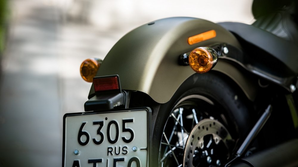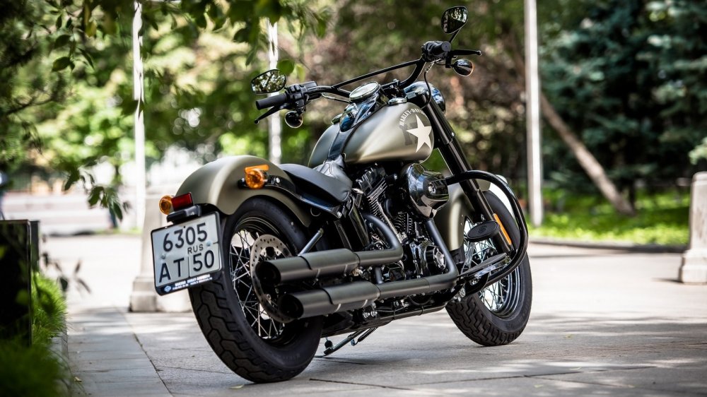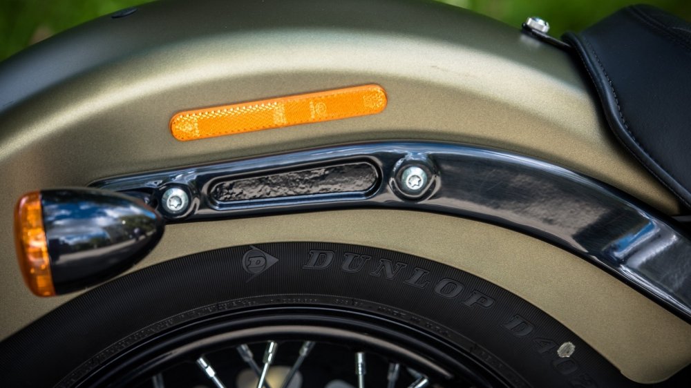 Slim S в «армейской» раскраске – и вовсе икона поклонения прошлому. Хотя, как это водится у H-D, только внешне. Этакий армейский хаки оказывается металликом, подвеска а-ля хардтейл (конструкция рамы без задней подвески), разумеется, вполне себе мягкая, хоть и очень короткоходная, как и у всех софтейлов, так что с кочками надо быть аккуратным. Спицованные колеса с толстой резиной тоже отсылают к славному и доблестному праотцу – WLA-42, но, как и весь образ, только внешне.