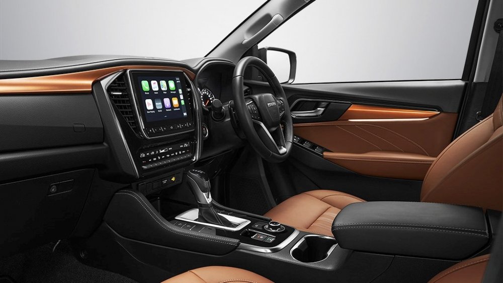 Если оформление передка MU-X существенно отличается от такового у пикапа D-Max, то внутри эти модели похожи как две капли воды, разве что оснащение у MU-X в топе побогаче. Отметим, что в целом с места водителя новый Isuzu MU-X выглядит консервативно: аналоговые шкалы спидометра и тахометра, россыпь кнопок на центральной консоли, традиционный селектор АКП, а не какой-нибудь новомодный джойстик. Между тем богатые версии оснащены новейшими системами активной безопасности, благодаря которым пикап  D-Max уже получил  5 звёзд рейтинга ANCAP, причём по новой, усложнённой методике испытаний.