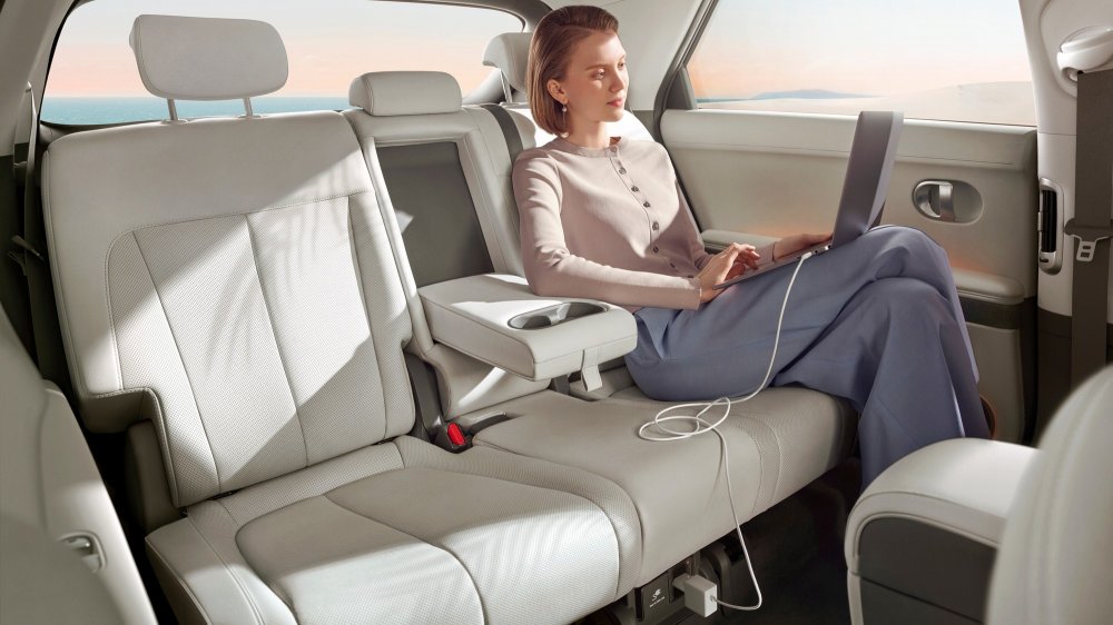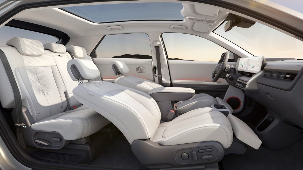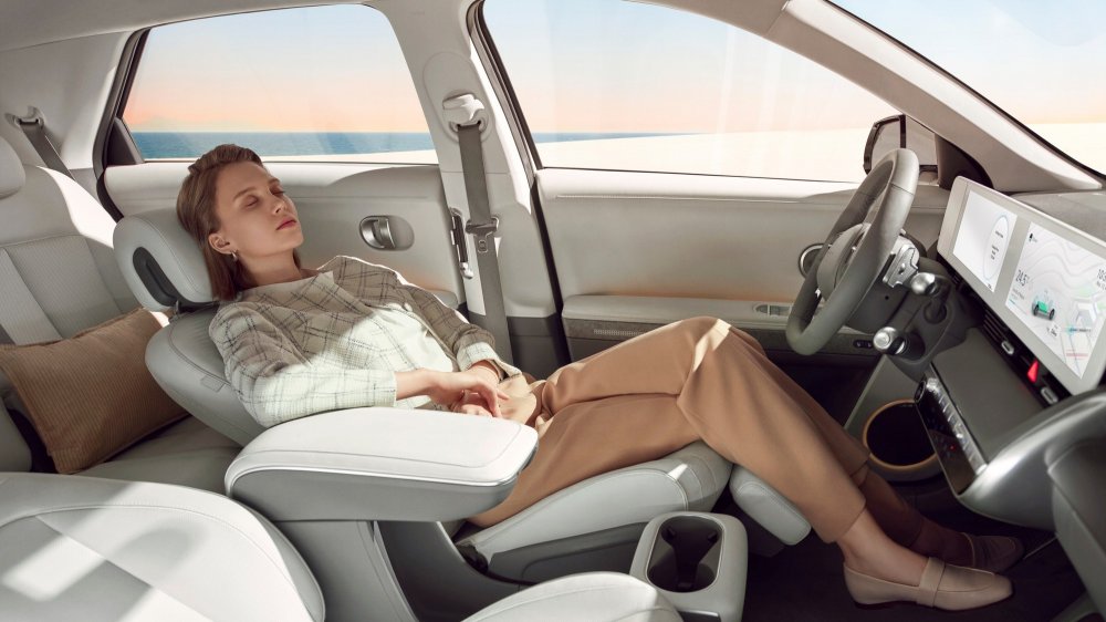 Передние кресла можно превратить в лежаки с выдвижными подпорками для ног. Под задним диваном имеется розетка для зарядки устройств мощностью до 3,6 кВт, вторая такая же розетка есть снаружи кузова. Эти розетки предназначены для зарядки электровелосипедов, моноколёс, электросамокатов и прочих «средств индивидуальной мобильности». Отделка салона выполнена из экологически чистых материалов, в том числе из переработанных пластиковых бутылок.