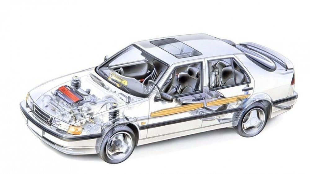 Однако Saab 9000 получил оригинальную заднюю подвеску, а в его конструкции появилось множество собственных решений – в частности, теоретически взаимозаменяемые с Фиатом и Лянчей двери имели собственную силовую структуру для лучшей защиты от боковых ударов. Другим было и основание передка – опять же, из соображений безопасности.