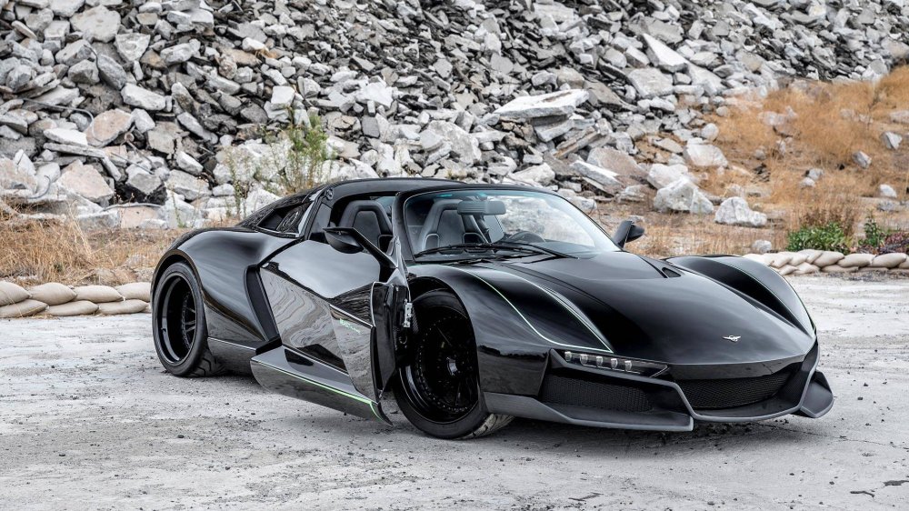 Rezvani Beast Alpha X Blackbird получил двери типа Sidewinder, съемную крышу, 18-дюймовые колеса, карбон-керамические тормоза, светодиодную оптику и углепластиковые кресла.