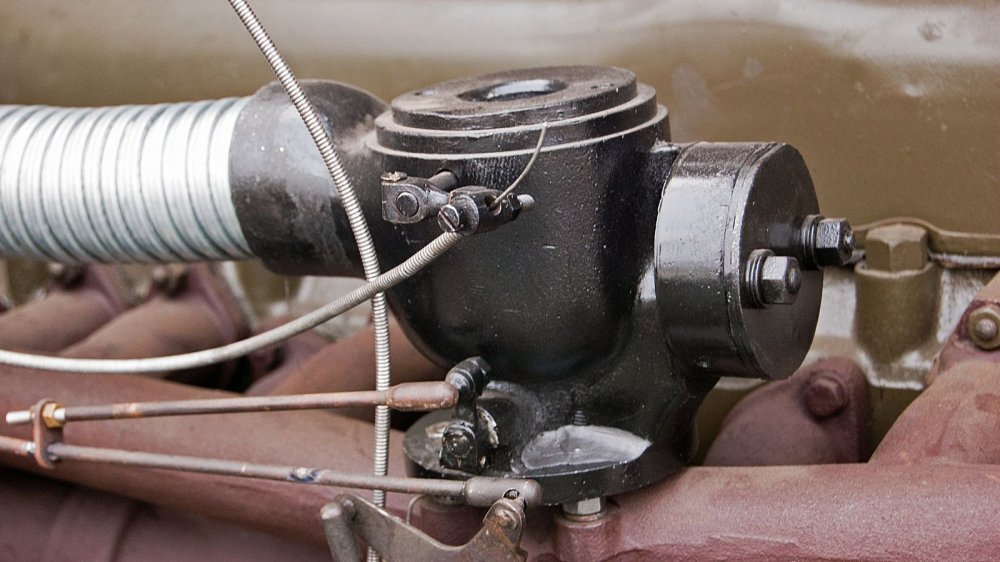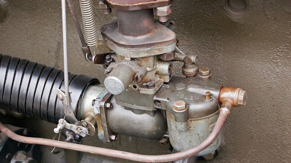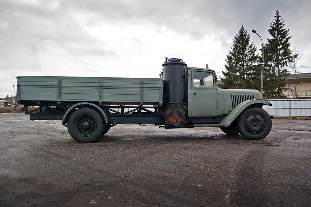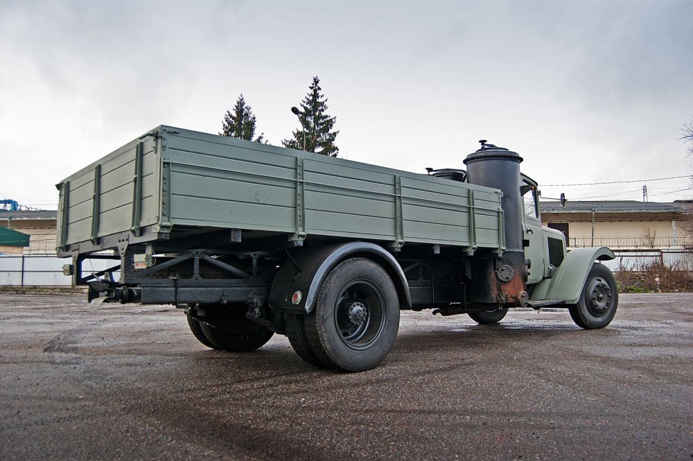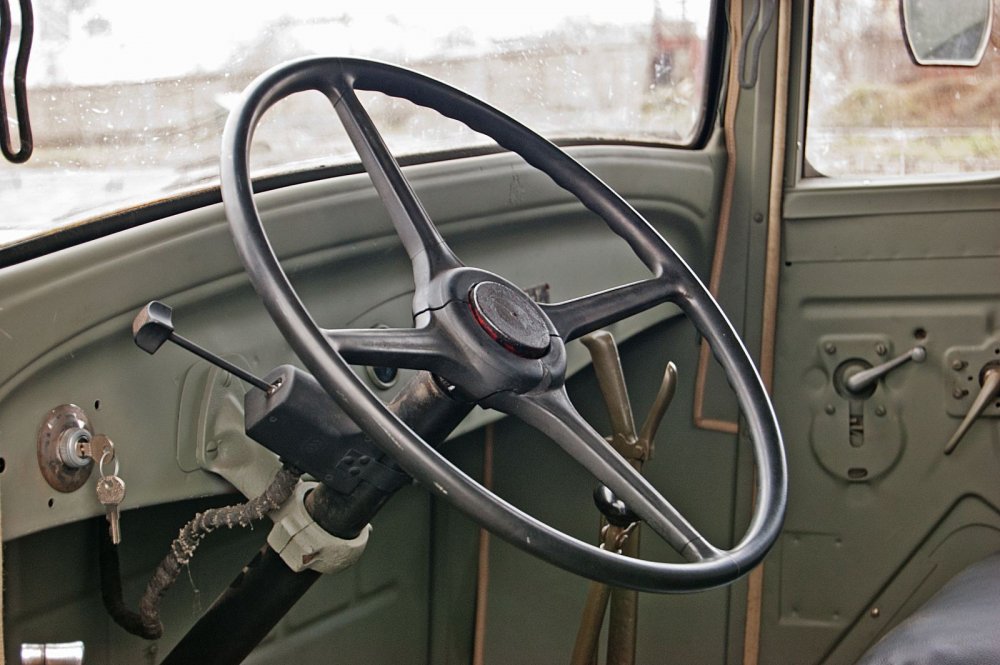 Интересная деталь: во Франции, откуда этот грузовик приехал в Россию в печальном состоянии, он был полностью переведён на «деревянное» топливо. С него сняли и бензонасос, и даже карбюратор. Само собой, смириться с этим было невозможно, и топливную систему пришлось восстанавливать уже здесь. Так что мы на тесте ездили на бензине. И это хорошо, потому что мощность мотора в 85 л.с. доступна только на нём. На «дровах» можно выжать около 50 л.с., и передвижение было бы унылым. Но на бензине… впрочем, об этом позже. Пока будем смотреть машину дальше.