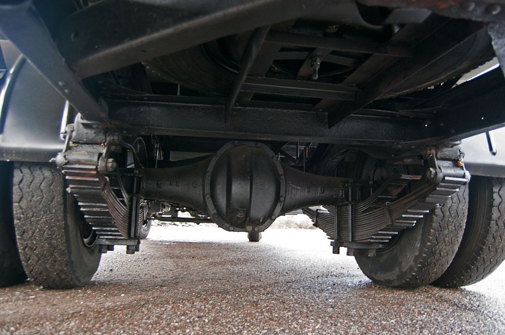 Удивительно, но в трансмиссии ничего необычного нет. Обычная четырёхступенчатая коробка передач, обычный карданный вал, обычный редуктор заднего моста. Правда, всё это тоже характерно-монументальное. Но всё-таки обычное. А вот тормоза – нет.