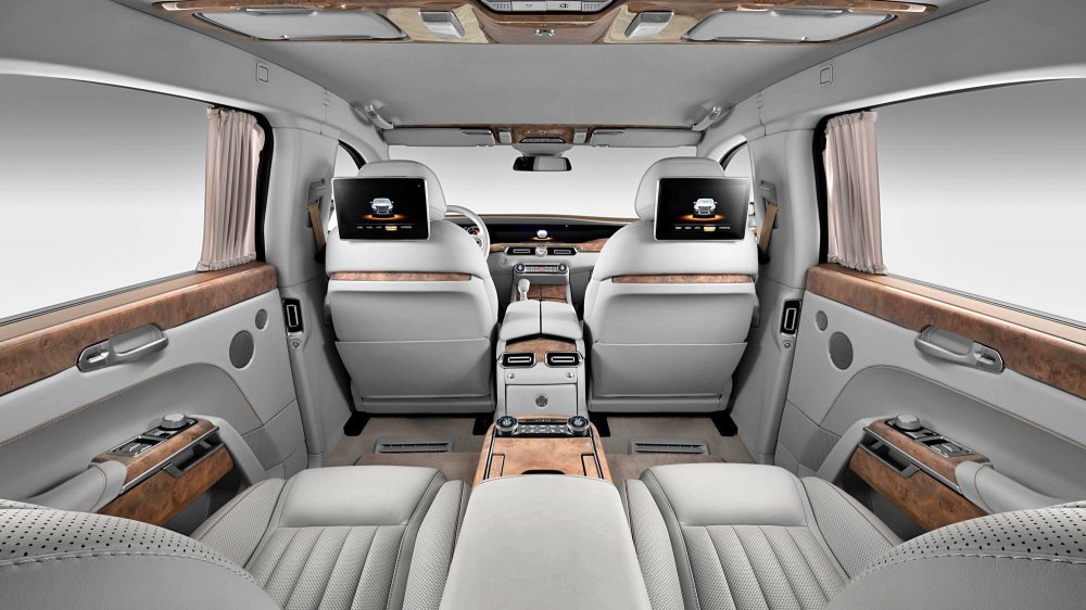 В оснащении заявлены 9 подушек безопасности, современные электронные ассистенты водителя, 4-зонный климат-контроль, холодильник с хрустальными бокалами, кресла с вентиляцией и массажем, высококлассная аудиосистема и многое другое.
