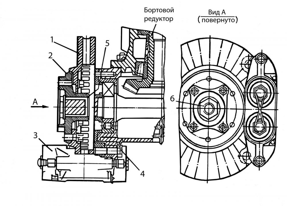 Зато выбранный подход сулил массу преимуществ. Установка открытых дисковых рабочих тормозов непосредственно на валах бортовых редукторов давала возможность оптимально разместить колесный редуктор с большим передаточным числом, уменьшить реализуемый тормозной момент на величину передаточного отношения колесного и бортового редукторов, снизить массу и габариты тормозных механизмов. Уменьшалось значение неподрессоренных масс автомобиля, увеличивался полезный объем для размещения элементов подвески, улучшилась плавность хода. Кроме того, повышение эффективности торможения вне зависимости от дорожных условий позволяло ещё и поднять среднюю скорость движения.