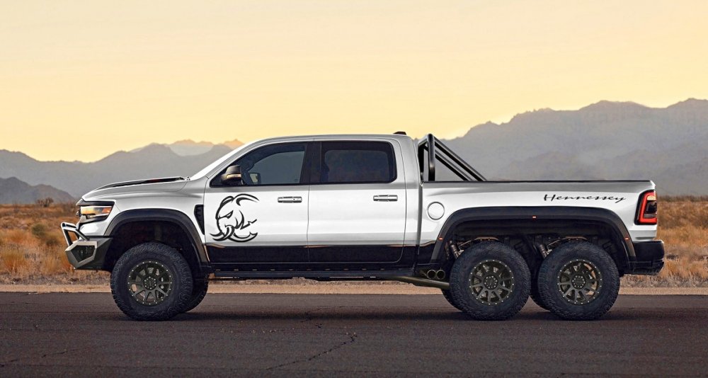 Американское тюнинг-ателье Hennessey Performance анонсировало самый крутой и мощный пикап в своей истории — Mammoth 6X6 на базе представленного недавно Ram 1500 TRX.
