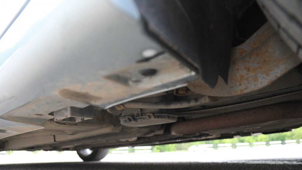 Более тщательный осмотр на подъемнике вряд ли даст много поводов для беспокойства. Основная часть днища хорошо прикрыта слоем мастики, и ржавчины на ней нет, разве что края пробок могут уже начать ржаветь. Поверхностная ржа есть по бокам от бензобака – там небольшое углубление, которое с завода не обработано мастикой, и куча трубочек и углубления для кронштейнов крепления продольного рычага задней подвески и подрамника. В итоге вентиляция тут хуже и защиты нет, так что поверхностная ржавчина обычно присутствует, но перфорация – редкость. Даже в задних арках обычно целы швы и дыры отсутствуют.