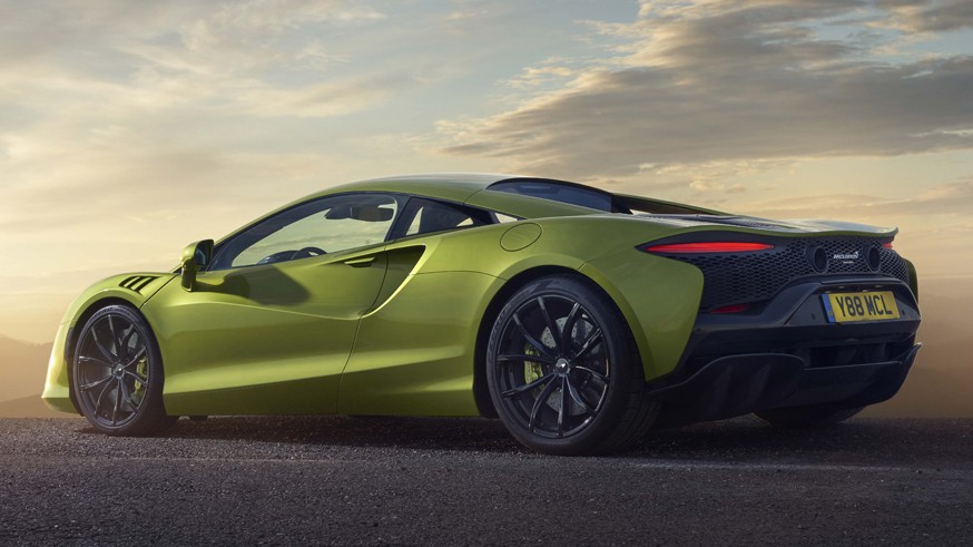 McLaren представил Artura в феврале 2021 года. Спорткар базируется на новой платформе MCLA (McLaren Carbon Lightweight Architecture), которая адаптирована под гибридную силовую установку. У модели подвеска с адаптивными амортизаторами (могут работать в трёх режимах – Comfort, Sport и Track): спереди двойные поперечные рычаги, сзади – «пятирычажка». Автомобиль снабдили карбон-керамическими тормозами, у передних дисков диаметр равен 390 мм (6-поршневые суппорты), у задних – 380 мм (4-поршневые).