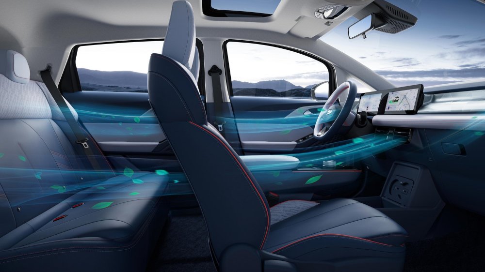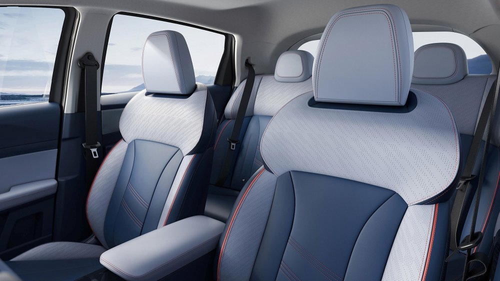 В оснащении заявлены адаптивный круиз-контоль, система контроля полосы движения и система автоматического аварийного торможения с функцией распознавания пешеходов. Салон оформлен яркими контрастным материалами и снабжён множеством ниш, полочек, кармашков и крючков для хранения мелочей. Объём багажника — 295 л, при этом спинка заднего дивана цельная — признак бюджетного автомобиля.
