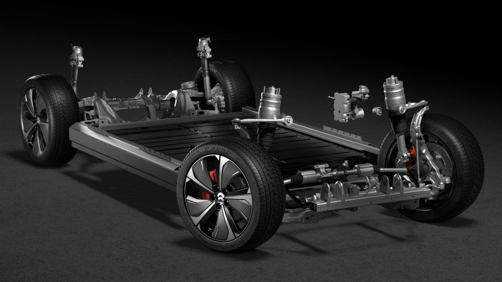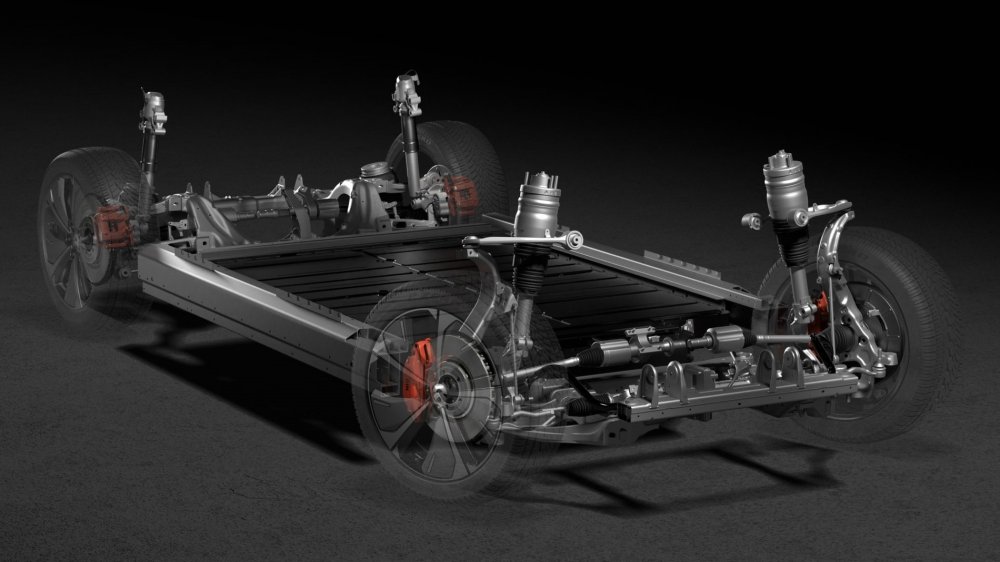 В основе Nio ES7 лежит свежая модульная платформа NT2 с плоской батареей в полу — такая же, как у седанов ET7 и ET5. В базовое оснащение входит адаптивная пневмоподвеска на двойных поперечных рычагах спереди и многорычажной конструкцией сзади. Дисковые тормоза с 4-поршневыми суппортами поставляет Brembo. Кузов изготовлен из высокопрочного алюминиевого сплава и углепластика. Днище у кроссовера полностью плоское и работает на низкий коэффициент аэродинамического сопротивления cx — 0,263. Выступы и выемки на кузове — это лидар и камеры, необходимые для работы электронных ассистентов водителя и автопилота.