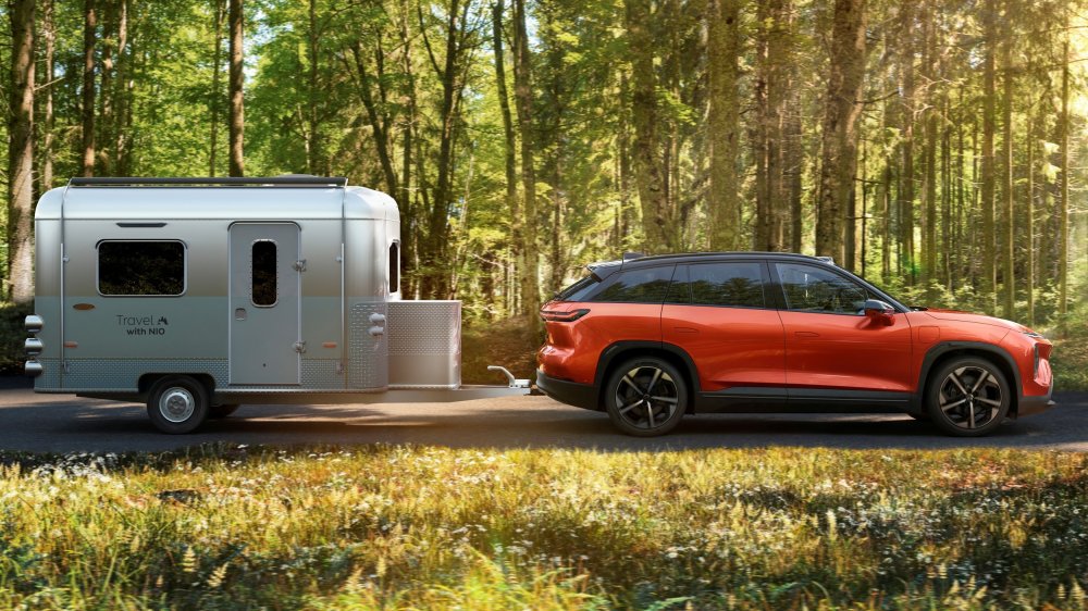 Для Nio ES7 предусмотрены три батареи на выбор — ёмкостью 75, 100 и 150 кВт·ч, запас хода на одной зарядке — 485, 620 и 850 км по китайскому ездовому циклу CLTC соответственно. В виде опции для кроссовера предлагается выдвижной фаркоп с электроприводом, он позволяет буксировать прицеп массой до 2 т и подключить его бортовое оборудование к батарее электромобиля (выходная мощность — 3,3 кВт), что очень удобно для кемпера.