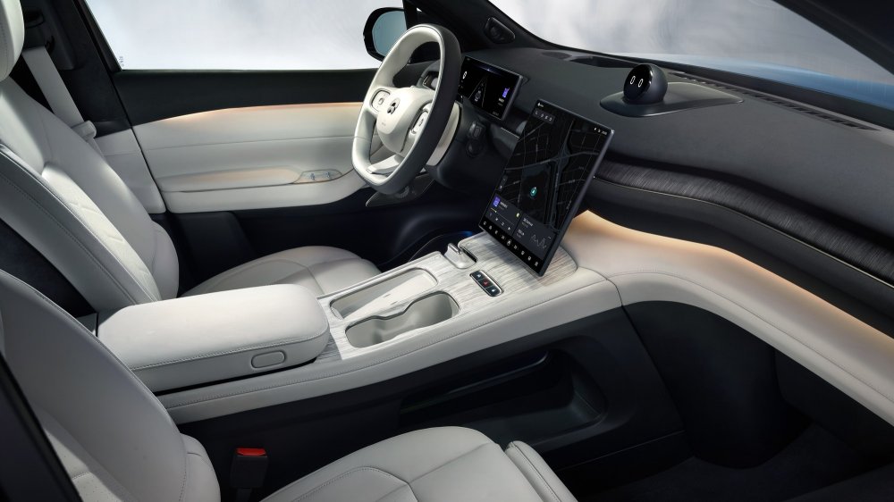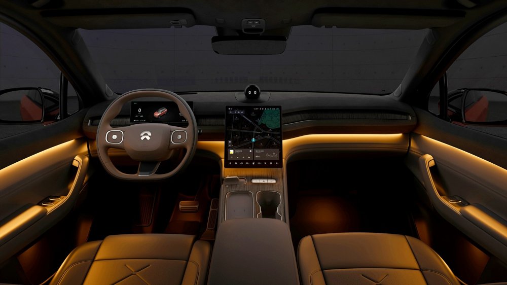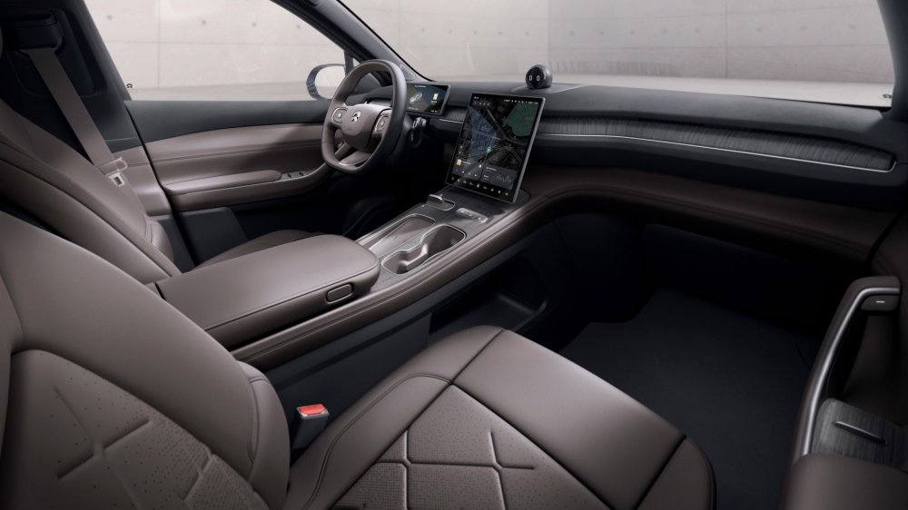 Интерьер оформлен в минималистичном ключе и отделан дорогими материалами (кожа, дерево), голого пластика практически нет, атмосферная диодная подсветка располагает палитрой в 256 цветов. Мультимедийный сенсорный экран по центру имеет диагональ 12,8 дюйма, над ним находится говорящая голова робота-асисcтента Nomi. Любителям развлечений адресованы 1000-ваттная аудиосистема с 23 громкоговорителями и очки виртуальной реальности.
