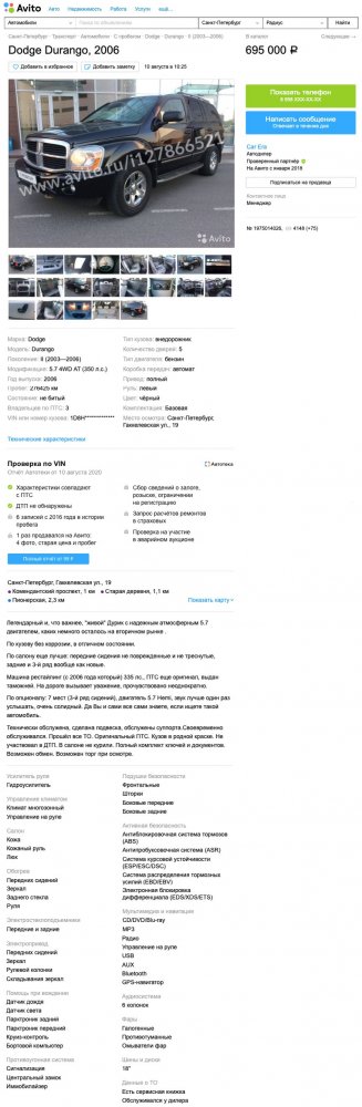 Ну а теперь, кратко разобравшись с возможностями выбора, определимся с тем, что именно мы будем себе позволять. Мотор V6 лучше отбросить: уж если покупать “дурынду”, то весёлую. Да и машин с моторами Hemi на вторичке больше, а значит, больше и выбор. К счастью, идеи строить из Durango серьезный внедорожник обычно оканчивались ничем: запчасти искать сложно, и старенький “крузак” или “патруль” для этого подходил намного лучше. Однако полный привод здесь все равно крайне желателен. Вот только найти рестайлинговую машину будет сложно: к примеру, на момент написания материала дорестайлинговых Durango на Авито продавалось 7, а вот рестайлинговый – один на всю страну. Так что придется работать с тем, что есть, и смотреть на машины вроде этой: с мотором 5,7 и полным приводом. Вот только правдоподобно большой пробег лучше все равно проверить с помощью Автотеки, а техническое состояние – тщательной диагностикой, поскольку продажа автосалоном и обещания “дилерского обслуживания” в наши дни – отнюдь не гарантия успешности покупки.