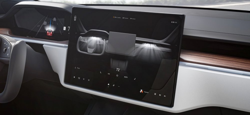 Прогресс в области автопилота объясняет произошедшие в интерьерах флагманских Model S и Model X перемены. Традиционное рулевое колесо здесь больше не требуется, так как водитель, по задумке разработчиков, с внедрением программы FSD будет обращаться к нему редко. Вместо руля теперь более компактный штурвал без замкнутого обода, а с колонки, к которой он крепится, исчезли подрулевые рычажки. Предполагается, что светом и поворотниками теперь тоже будет управлять автопилот, но возможность ручного включения поворотников и фар всё же осталась — с помощью сенсорных панелей и вращающихся барабанчиков на штурвале. Любопытно, что в конфигураторе всё-таки можно выбрать круглый руль вместо штурвала, но функционал от этого не изменится.