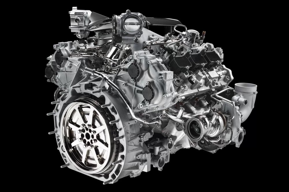 О 3,0-литровой «битурбошестёрке» Nettuno для бензиновой версии Maserati MC20 мы подробно рассказывали в июле. Вкратце напомним, что двигатель этот имеет два расположенных снаружи блока турбокомпрессора (нетипичное по современным меркам решение), комбинированный впрыск топлива и форкамерное зажигание с двумя свечами на цилиндр. Максимальная отдача составляет 630 л.с. при 7500 об/мин и 730 Нм в диапазоне от 3000 до 5500 об/мин. Вся мощность передаётся на задние колёса через 8-ступенчатый «автомат» типа DCT (с двумя сцеплениями) и самоблокирующийся дифференциал. В виде опции предлагается блокировка с электронным управлением. Разгон до 100 км/ч занимает 2,9 с, до 200 км/ч — 8,8 с. Максимальная скорость — 325 км/ч.
