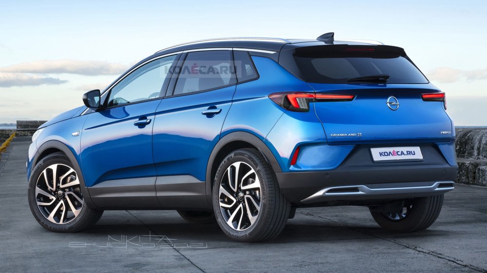 Пока нет фотографий боковин и задней части рестайлинговой модели, однако можем предположить, что обновление затронет и заднюю оптику: мы изобразили вариант с более узкими фонарями в стиле того же Mokka второй генерации. Также представленный на рендере автомобиль имеет изменённый задний бампер с вертикальными светоотражателями.