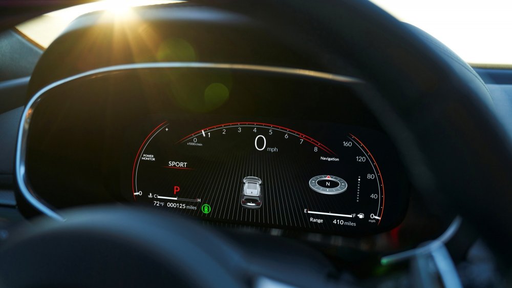 Перед водителем теперь полностью виртуальный 12,3-дюймовый щиток приборов, а в виде опции предлагается ещё и 10,5-дюймовый цветной проекционный экран. Диагональ экрана новой мультимедийной системы — 12,3 дюйма, но управлять ей предлагается через старомодную сенсорную панель на центральной консоли, что расположена рядом с кнопочным пультом управления АКП и лотком беспроводной зарядки для смартфона. В отделке много чёрного глянцевого пластика, который, видимо, призван отражать в темноте светодиодную контурную подсветку.