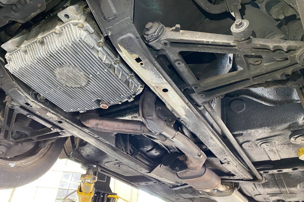 Конструкция по современным меркам диковинная, особенно для машин этого класса. Двигатель установлен спереди продольно, а 5-ступенчатая механическая коробка передач отнесенная к задним, ведущими колёсам (схема Transaxle). Тормоза задних колёс установлены до полуосей, рядом с корпусом дифференциала и не увеличивают неподрессоренные массы.