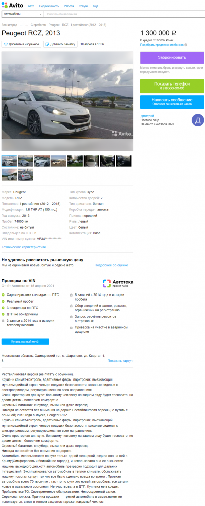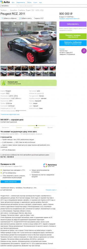 Ну а теперь, когда мы выяснили, из какого теста слеплен RCZ и чего от него можно ожидать, давайте попробуем сформировать портрет оптимального экземпляра. Эта задача не так проста, как кажется: во-первых, разным водителям подойдут разные сочетания моторов и коробок, а во-вторых, поиск нужного силового агрегата будет осложняться крайне скудным ассортиментом на вторичном рынке. Например, тем, кто ждет от купе драйва, стоит поискать автомобиль на механике – лучше с мотором в 200 л.с., но и базового 156-сильного мотора кому-то будет достаточно. Лучше, если это будет ухоженный автомобиль от первого владельца с пробегом около ста тысяч километров – например, вот такой. И если Автотека подтвердит пробег, число владельцев и отсутствие ДТП в истории, то покупку можно будет считать успешной.