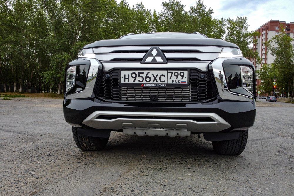 В 2017 году я так писал о внешности Pajero Sport: «Каким должен быть флагман внедорожной линейки? По-моему, прежде всего – солидным и основательным. Ну а Pajero Sport? Мне кажется, что ему больше подходят определения "хищный", "брутальный", "энергичный"… Надутые мускулами колесные арки, резкие грани тянущихся над ними подштамповок, переходящие в "стрелки" задней и передней светотехники, круто, чуть не до крыши вздымающаяся нижняя линия остекления и весь "сложносочиненный" хром на передней части машины, включающий в себя массивные блестящие "жвалы" и получивший у японских дизайнеров название Dynamic Shield ("динамический щит»"). Очень непростую форму имеет и светотехника – и передняя в виде положенной на бок буквы «Л», и задняя со стекающими до уровня бампера узкими лопастями.