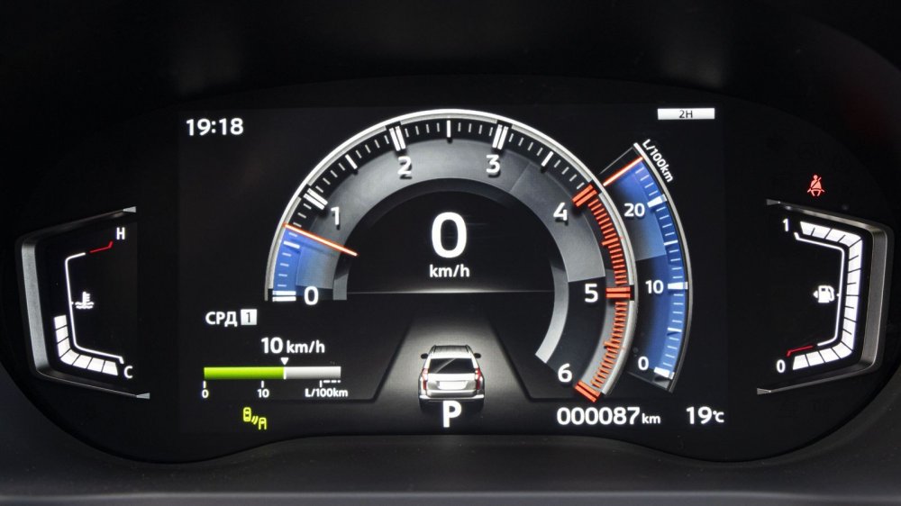 Кстати, стоять на месте в таком режиме автомобиль может не более 10 минут, по истечении которых система начнет возмущаться. Не меньшее возмущение она выскажет и в случае, если вы попробуете покинуть машину, стоящую на автоматическом удержании: хочешь выйти, переведи коробку в Parking! Ну и, конечно же, в городе очень радует отменная маневренность Pajero Sport. Радиус разворота составляет всего 5,6 метра, а это дает возможность, например, найти небольшое расширение и в один прием развернуться на двухполосной дороге.