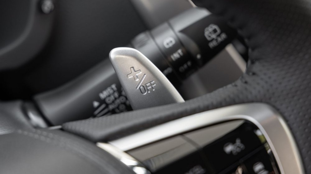 Примечательно, что команду на открывание двери можно дать множеством способов: клавишей на самой двери, кнопкой на брелоке, кнопкой в салоне, методом «волшебного пенделя» (то есть махнув ногой под одним из углов заднего бампера)... А можно – командой из приложения Mitsubishi Remote Control, установленного на вашем смартфоне. Кстати, очень удобно. Есть, например, такой режим: автомобиль сам, без дополнительных команд, откроет вам доступ в багажник, как только опознает приближающийся ключ-брелок. Очень удобно в случае массовых закупок в супермаркетах.