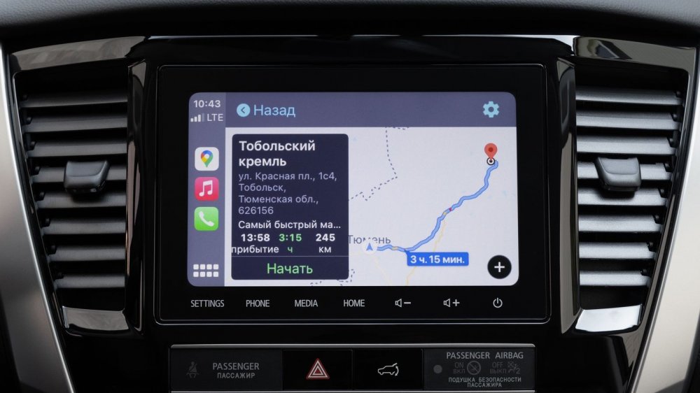 Остальные новации нужно было проверять уже на ходу. Маршрут наш пролегал из Тюмени в старинный Тобольск, и уже на улицах нынешней столицы нефтегазового комплекса я оценил удобство появившейся функции AutoHold. Подъехал к светофору, затормозил до полной остановки – и можно убирать ноги с педалей, автомобиль будет спокойно стоять на месте, хотя селектор автомата остается в положении Drive. Загорелся зеленый, слегка нажимаешь на газ – и автомобиль сам снимается со стояночного тормоза.