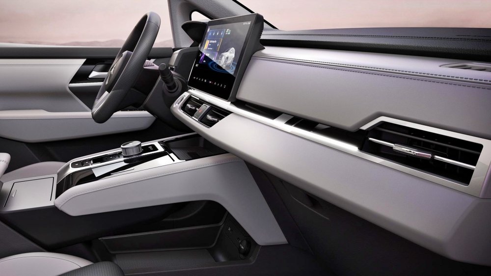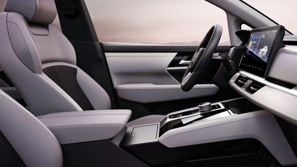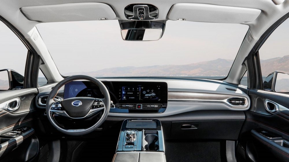 Ещё больше различий между Aion V и Airtrek в салоне: Mitsubishi отказалась от широкоформатного двухэкранного щитка приборов «китайца» и внедрила два отдельных дисплея, оформление передней панели и дверных карт стало строже, появился новый руль, но шайба выбора ездовых режимов на залитом чёрным глянцем центральном тоннеле сохранилась.
