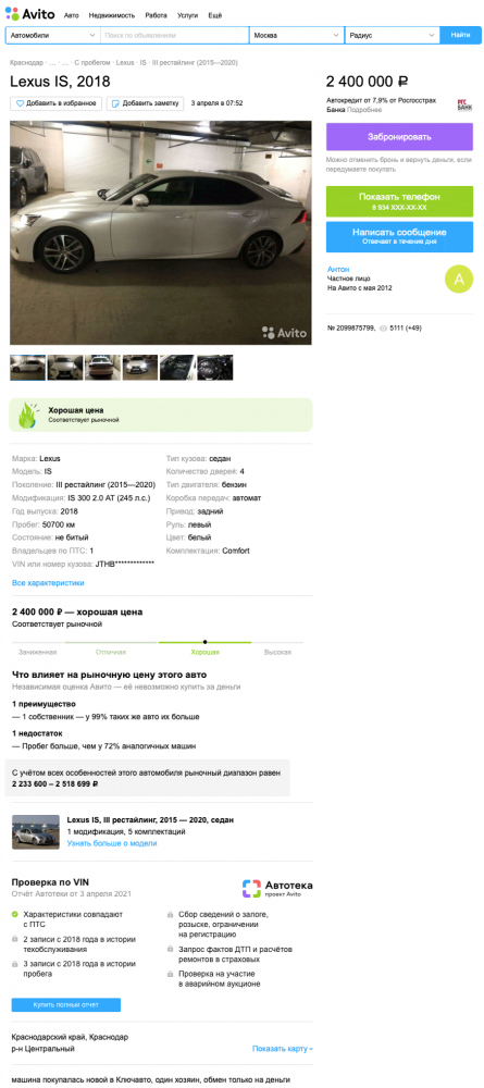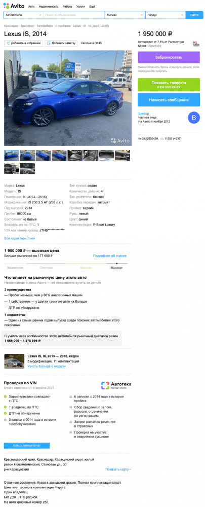 Ну а если вы непременно хотите максимально свежий автомобиль, то двух миллионов будет маловато. Придется добавить тысяч 400-500, чтобы купить трехлетний IS с пробегом до 50 тысяч километров – например, вот такой. И, учитывая состояние машин и малый пробег, такой седан готов провести с вами не один и не два года, радуя динамикой и сравнительно недорогим обслуживанием. А там, глядишь, и четвертое поколение, наконец, представят.
