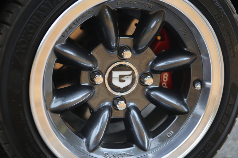 Подвеска полностью кастомная, регулируемая. В 13-дюймовых колёсных дисках в ретро-стиле красуются тормоза Wilwood. До 60 миль/ч (96,56 км/ч) 635-килограммовая малютка разгоняется менее четырёх секунд. Средний расход топлива благодаря небольшой массе составляет всего 6,7 л/100 км.