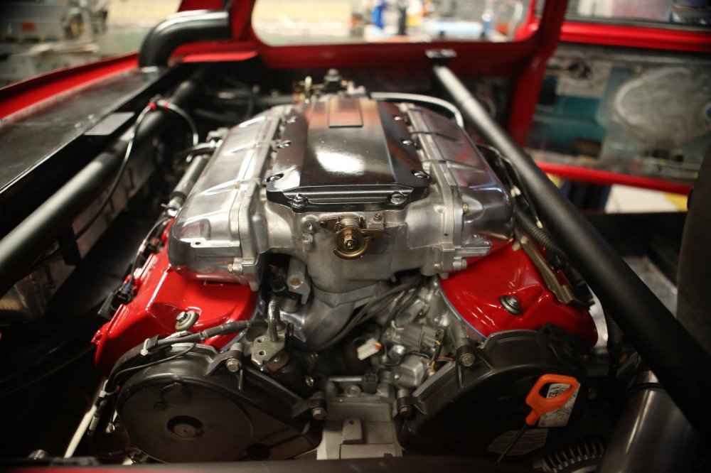 Отдачу подняли за счёт увеличения рабочего объёма до 3,5 л, установки новых коленвала, кованых поршней, шатунов и форсунок. Разумеется, не обошлось без наддува, а именно приводного нагнетателя Rotrex C38-81 с изготовленным на заказ интеркулером. Под капот хэтчбека третьей серии (Mark III) родом из 70-х прокачанный японский агрегат не влез, его установили поперечно в салоне, прямо за спинками кресел водителя и переднего пассажира. Состыкованная с этим мотором 6-ступенчатая МКП передаёт всю мощность на задние колёса через сцепление Clutch Masters FX350.