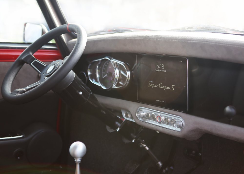 Снаружи Super Cooper Type S мало отличается от обычного классического Mini. Маленького монстра в этом рестомоде выдают лишь расширенная колея, да вентиляционные форточки в задних боковых окнах, через которые к двигателю поступает воздух.