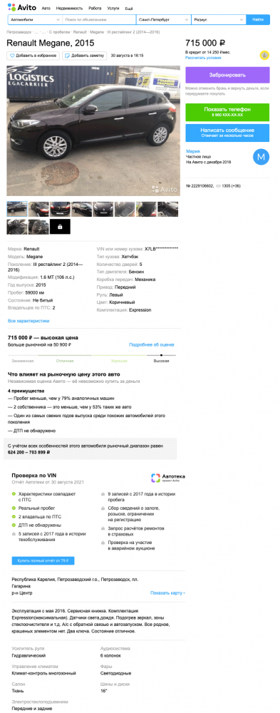 Если Автотека подтвердит честность столь небольшого пробега и безаварийную историю, то Megane станет отличным «антикризисным» вариантом для тех, кто свободен от предрассудков о французских машинах. При этом сочетание базового мотора и механики не означает непременной бедности комплектации, так что не придется отказываться от опций в угоду экономности содержания. Ну а ресурс механической части у этих машин весьма хорош, так что Megane вполне может стать спутником на 3-5 лет, а то и больше.