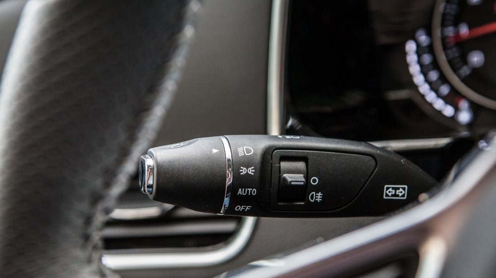 Другое дело, что бортовым компьютером на аналоговом щитке почему-то нельзя управлять кнопками на мультифункциональном руле: на нашем тестовом образце на обоих спицах руля оказались заглушки. Вместо этих заглушек действительно размещаются кнопки управления данными, но только на версии с цифровым щитком! Чтобы управиться с бортовым компьютером на аналоговой версии, нужно тянуться рукой к механической кнопке, размещённой в правом нижнем углу приборного щитка. Всё той же кнопкой последовательно придётся обнулять показания, переходя от одной вкладки к другой. Неудобно. С левой стороны на щитке тоже есть кнопка, но она вообще не задействована…