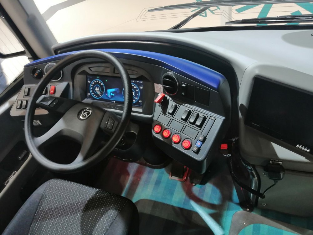 Я бы не упоминал систему климат-контроля, которой сейчас никого не удивишь, если бы не одна деталь. Все прекрасно понимают, что расход энергии на работу «климата» очень существенный. Особенно в автобусе. У того же электробуса МАЗ 303Е10 запас хода при работающем отоплении падает с 300 до 200 км. Для того, чтобы избежать такого сокращения запаса хода, некоторые производители ставят дизельные или бензиновые отопители, которые в электробусе выглядят как атавизм. В CITYMAX Hydrogen климат-контроль солярку не потребляет, он полностью электрический. И чтобы не сокращать зимой запас хода, тепло он берёт напрямую из водородного топливного элемента, в котором при работе этого тепла достаточно. Решение логичное и элегантное.