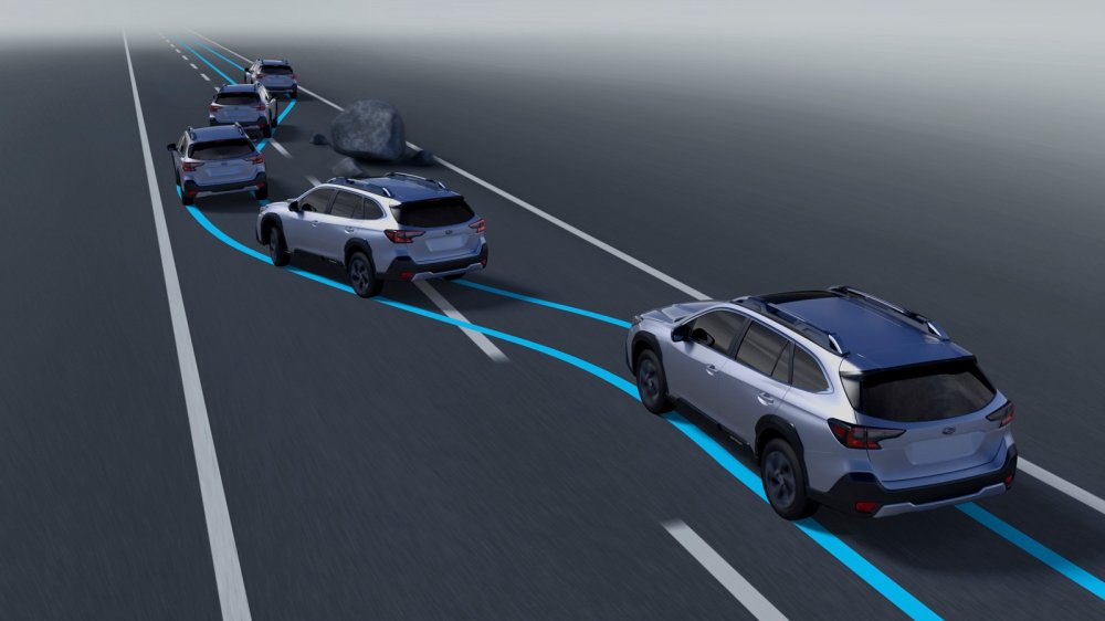 Рассказ о новом Subaru Outback однозначно был бы неполным без упоминания системы EyeSight, и очень важно, что даже по сравнению с версией, которой оснащается нынешний Forester (а она меня в свое время изрядно впечатлила), новое поколение системы получило массу свежих возможностей и функций. Начнем с того, что теперь оптические датчики размещаются в своего рода блендах, которые отсекают боковые засветки и исключают запотевание ветрового стекла перед объективами. Система получила почти в два раза более широкий угол обзора, причем как по горизонтали, так и по вертикали. Это позволило не просто исполнять функцию активного круиз-контроля (способного работать даже в условиях города) и контроля за выходом из полосы, но и осуществлять превентивное торможение в целом ряде сложных ситуаций: например, когда вы поворачиваете на зеленый свет налево, а навстречу вам едет автомобиль, или когда при повороте на зеленый начинают двигаться пешеходы, а вам надо их пропустить, или когда поперек вашей траектории движется велосипедист…