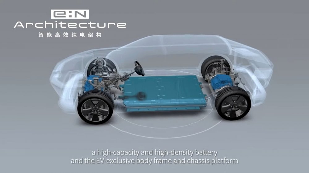 Из презентации следует, что платформа e:N Architecture F имеет короткую «бугристую» батарею и простенькую подвеску со стойками McPherson спереди и полузависимую с поперечной торсионной балкой сзади. Вряд ли сделанные на этой платформе кроссоверы e:NS1 и e:NP1 смогут похвастать большим запасом хода на одной зарядке.
