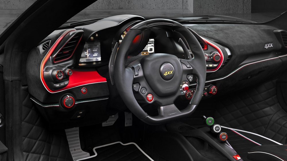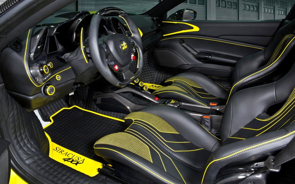 Короче говоря, Ferrari FXX-K — это очень крутая машина, которую не встретишь на обычных дорогах. Другое дело модель 488 GTB (выпускалась с 2015 по 2019 год) — массовая в масштабах Скудерии, стоимостью около 250 тысяч долларов, для которой фирма Mansory в 2016 году предложила комплексный пакет доработок (внешний вид, салон, апгрейд подвески и двигателя) и назвала это дело 4XX Siracusa.
