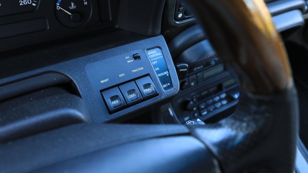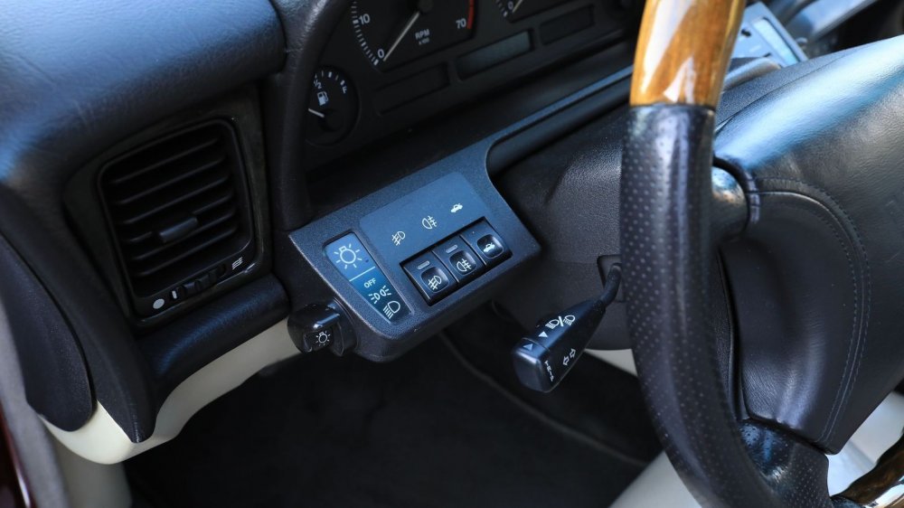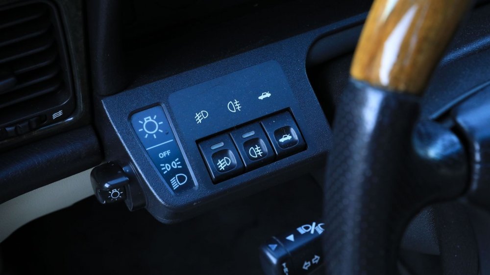 Справа и слева от руля находятся любопытные «мини-клавиатуры», напоминающие пульты управления напольным офисным принтером или кофе-машиной. Левая «клавиатура» отвечает за свет, а правая – за круиз. В те годы обилием кнопок и иных органов управления было принято демонстрировать техническую продвинутость автомобиля…