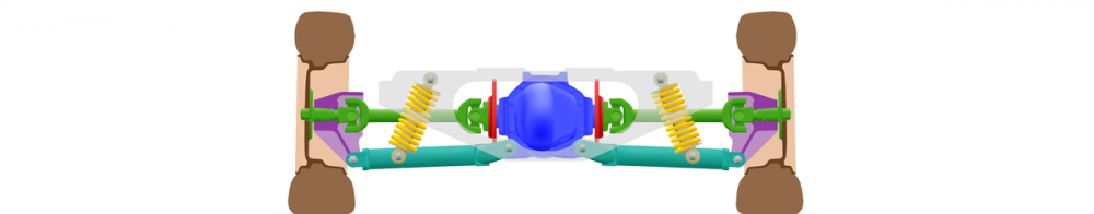 «Независимая задняя подвеска Jaguar» независима не только в плане развязки правого колеса от левого. Она еще и представляет собой полностью самостоятельную конструкцию, по сути «независимую» от кузова – подрамник с подвеской можно демонтировать с автомобиля целиком, единым узлом. Сейчас подобное типично, но на то время было редкостью. В центре подрамника через сайлентблоки крепится редуктор моста, от которого к ступицам идут не ШРУСы, а карданы. С точки зрения кинематики подвеска представляла собой двухрычажку, в которой нижний рычаг был обычным шарнирным рычагом, а вот в качестве верхнего выступал кардан привода, не имеющий, в отличие от ШРУСа, конструктивного осевого люфта и способный держать осевую нагрузку. Шарниры нижних рычагов в свою очередь качаются на роликовых подшипниках для обеспечения собранности подвески в движении. А подрамник крепится к кузову через резиновые блоки, изолируя его от вибраций, стуков и гула шин.