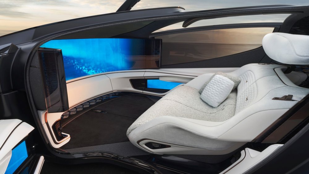 Концепты, подобные InnerSpace, мы уже видели в исполнении Rolls-Royce и Bentley, но Cadillacт предлагает типично американское, слегка избыточное и показное представление о роскошном купе будущего. По сути, InnerSpace — это мобильная гостиная с мягким двухместным диваном, перед которым на расстоянии около двух метров установлен панорамный широкий экран, частично перекрывающий лобовое стекло.